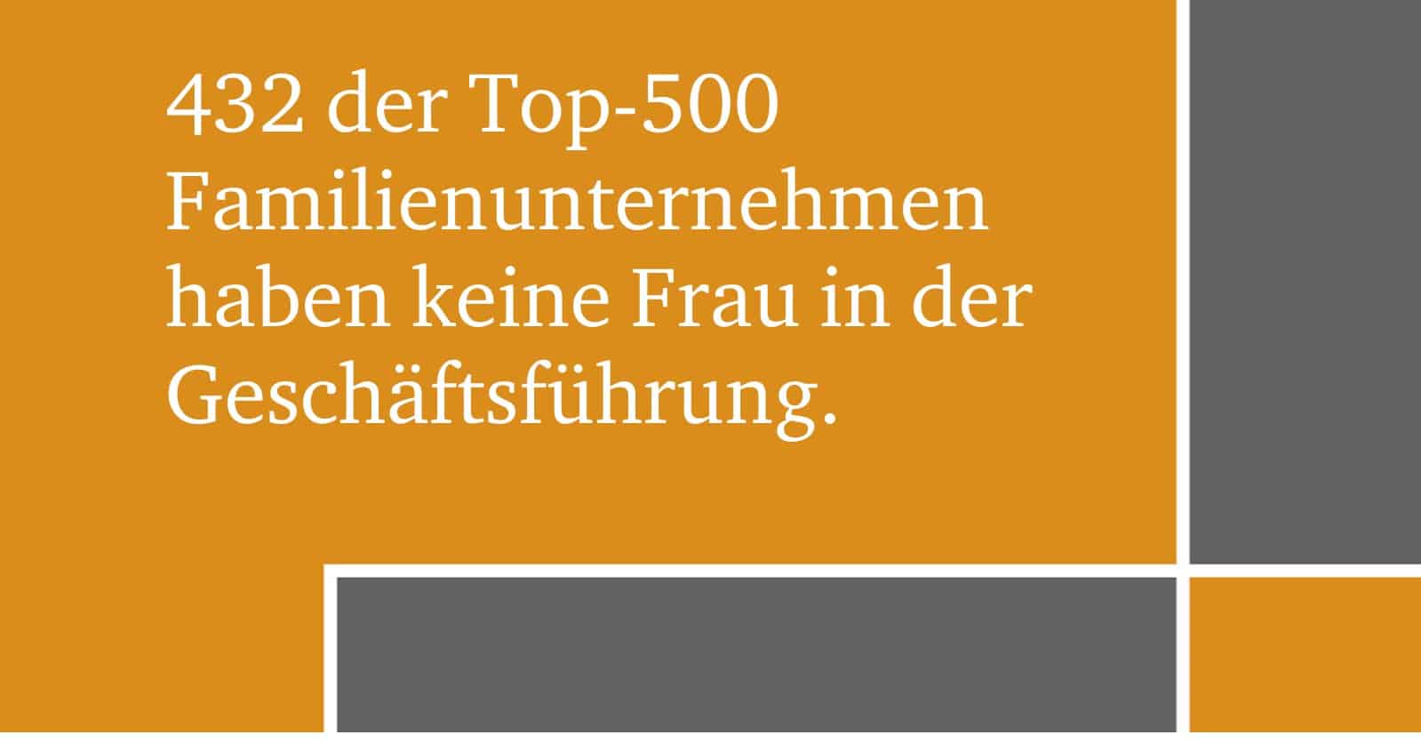 Neue Auswertung: Nicht 29 Prozent, wie die Allbright-Studie bei den Top-100 Familienunternehmen offenbarte, sondern nur erschreckende 13,6 Prozent der Top-500 Familienunternehmen haben eine Frau in der Führung.